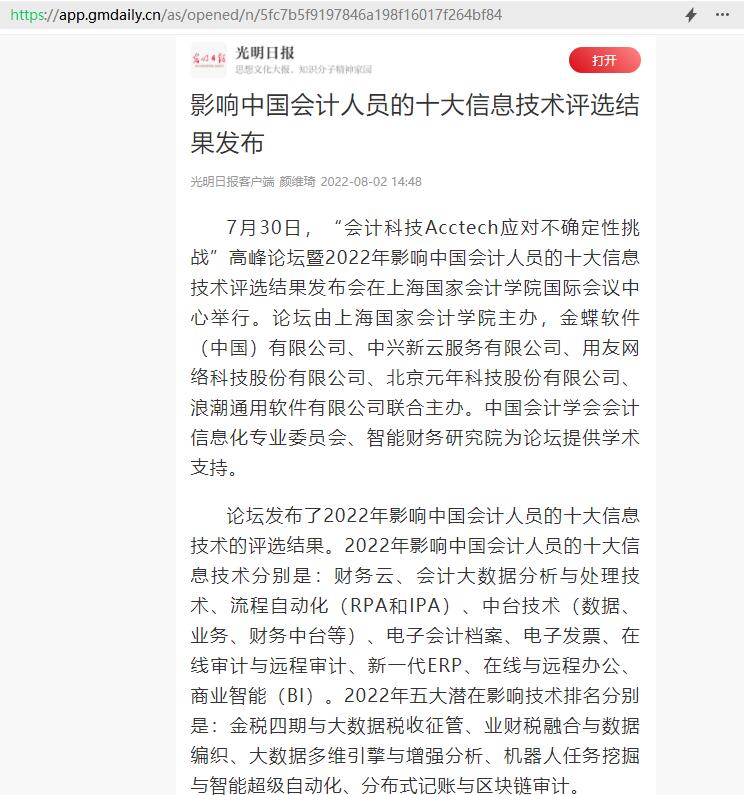 影响中国会计人员的十大信息技术评选结果发布【2022年8月2日,光明日报】
