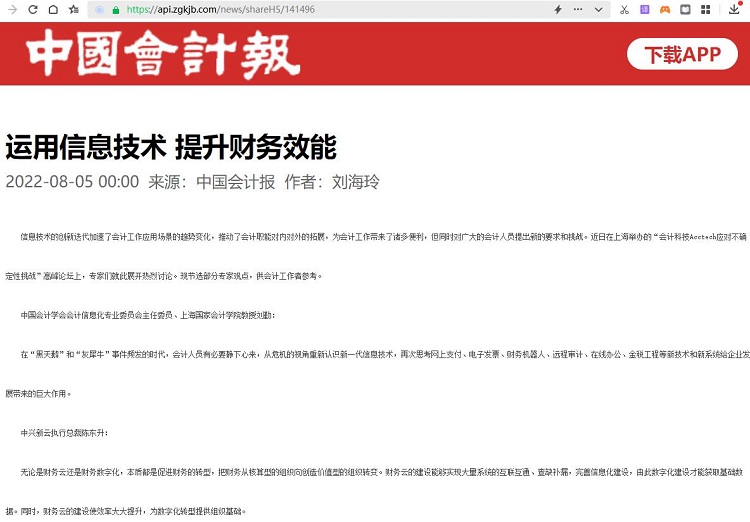 运用信息技术 提升财务效能【2022年8月5日,中国会计报】