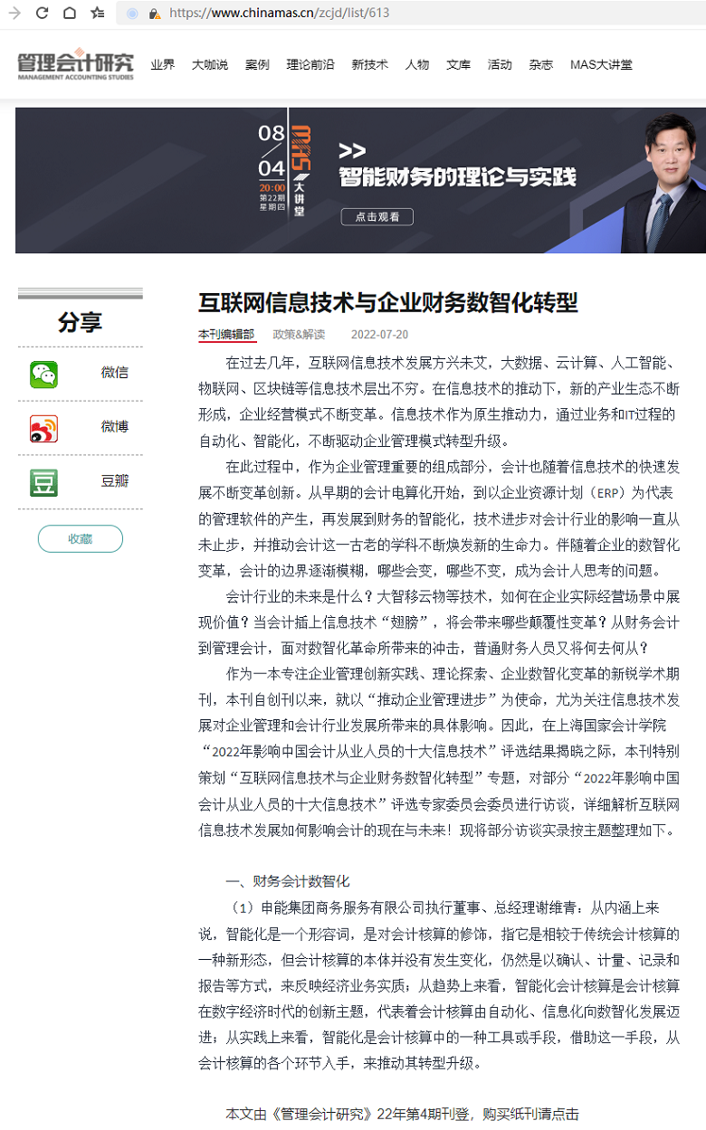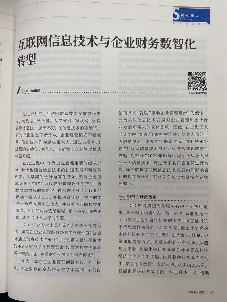 互联网信息技术与企业财务数智化转型【2022年第4期,管理会计研究】