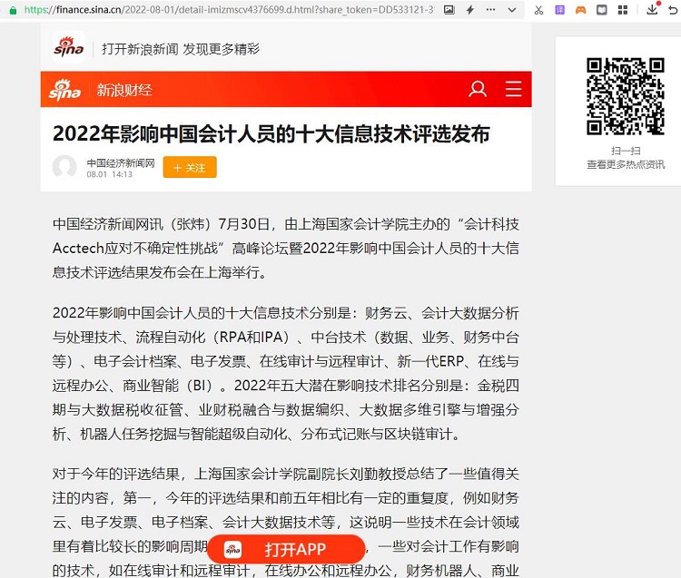 2022年影响中国会计人员的十大信息技术评选发布【2022年8月1日,中国经济新闻网】