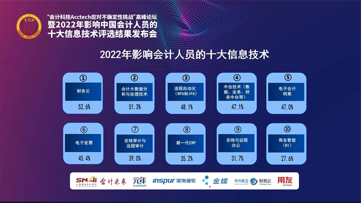 2022年影响中国会计人员的十大信息技术的评选结果。