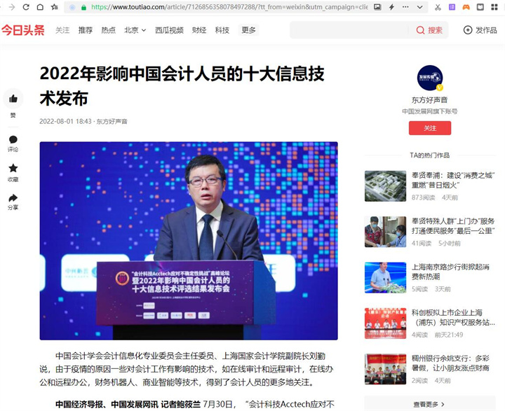 2022年影响中国会计人员的十大信息技术发布【2022年8月1日,东方好声音】