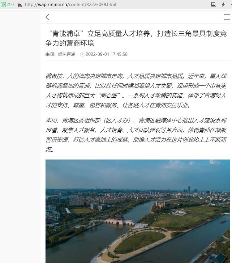 “青能浦卓”立足高质量人才培养,打造长三角最具制度竞争力的营商环境【2022年9月1日,新民晚报】