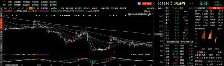 9月8日,红塔证券收跌0.95%报8.36元/股,最新市值为394亿元。