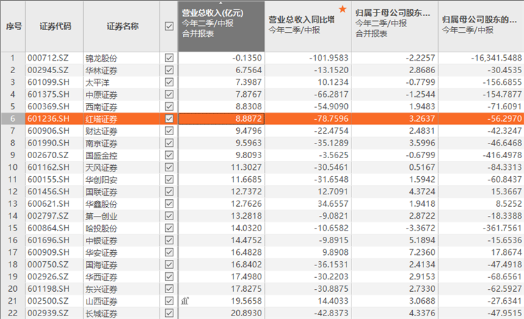 在俄乌冲突、疫情、美联储加息等因素扰动下,上半年A股市场先抑后扬,券商股价表现低迷,券商自营投资业务“重挫”,不少券商上半年投资收益亏损,拖累整体业绩。就红塔证券而言,上半年投资收益近5亿元,行业排名居中,但也因作为主要收入来源的自营投资业务下滑明显,整体业绩在业内排名靠后。