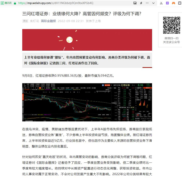 刘凤委:三问红塔证券:业绩缘何大降?高管因何频变?评级为何下调?【2022年9月8日,国际金融报】