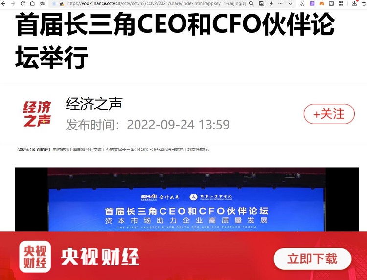 首届长三角CEO和CFO伙伴论坛举行【2022年9月24日,央广经济之声】