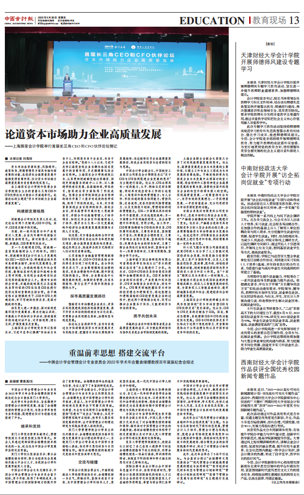 论道资本市场助力企业高质量发展——上海国家会计学院举行首届长三角CEO和CFO伙伴论坛侧记【2022年9月30日,中国会计报】