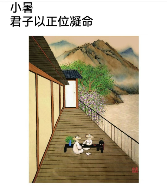 赤日炎炎似火烧,野田禾稻半枯焦,农夫心内如汤煮,公子王孙把扇摇。明代小说家施耐庵创作的一首七言绝句《赤日炎炎似火烧》,确实在这个小暑时节中,天地之间就像蒸笼一样。在小暑节气,民间有一种说法:冬不坐石,夏不坐木。意思是冬天的时候不要去做大石头;炎热的夏天,气温高,湿度大,不管是什么样的木料,经过露打雨淋,含水分都是较多的,可能表面上看着是干的,但是只要你坐上去,人的体温接受了树木散发的潮气,就容易诱发风湿、关节炎一类的疾病。正如黄帝内经中说,故智者之养生也,必顺四时而适寒暑,和喜怒而安居处。就是告诫人们要时常保持心态的平和,使自己适应所处的生活环境,也体现了顺势应时对于人体健康的好处。