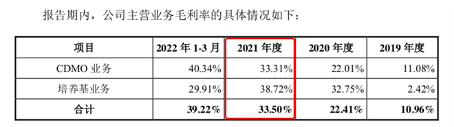 根据迈百瑞的招股书,2019年~2021年,迈百瑞向荣昌生物分别销售了1106万元、1126万元(注:CDMO业务329万元+培养基业务797万元)、5330万元。引人注目的是,迈百瑞2021年向荣昌生物销售CDMO服务收入出现了暴涨——2021年销售金额是4006万元,同比2020年的329万元,增幅高达1117.63%。