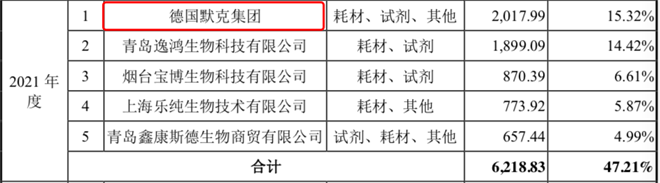 2021年,迈百瑞第一大供应商是德国默克集团,图片来自迈百瑞招股书