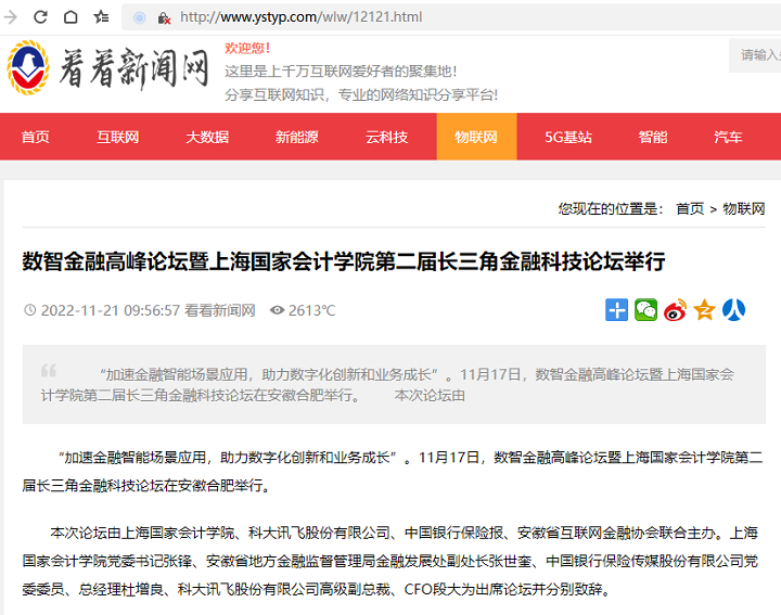 数智金融高峰论坛暨上海国家会计学院第二届长三角金融科技论坛举行【2022年11月21日,看看新闻网】