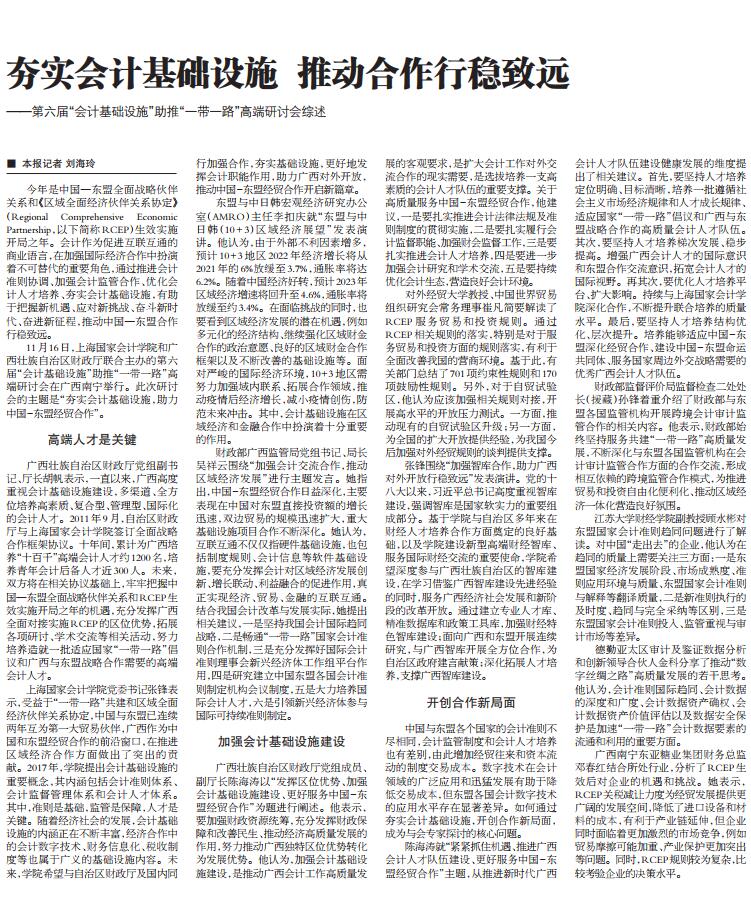 夯实会计基础设施 推动合作行稳致远——第六届“会计基础设施”助推“一带一路”高端研讨会综述【2022年11月18日,中国会计报】