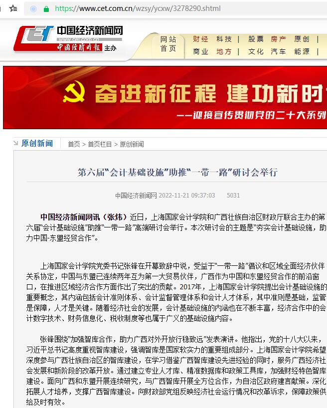 第六届“会计基础设施”助推“一带一路”研讨会举行【2022年11月21日,中国经济时报】