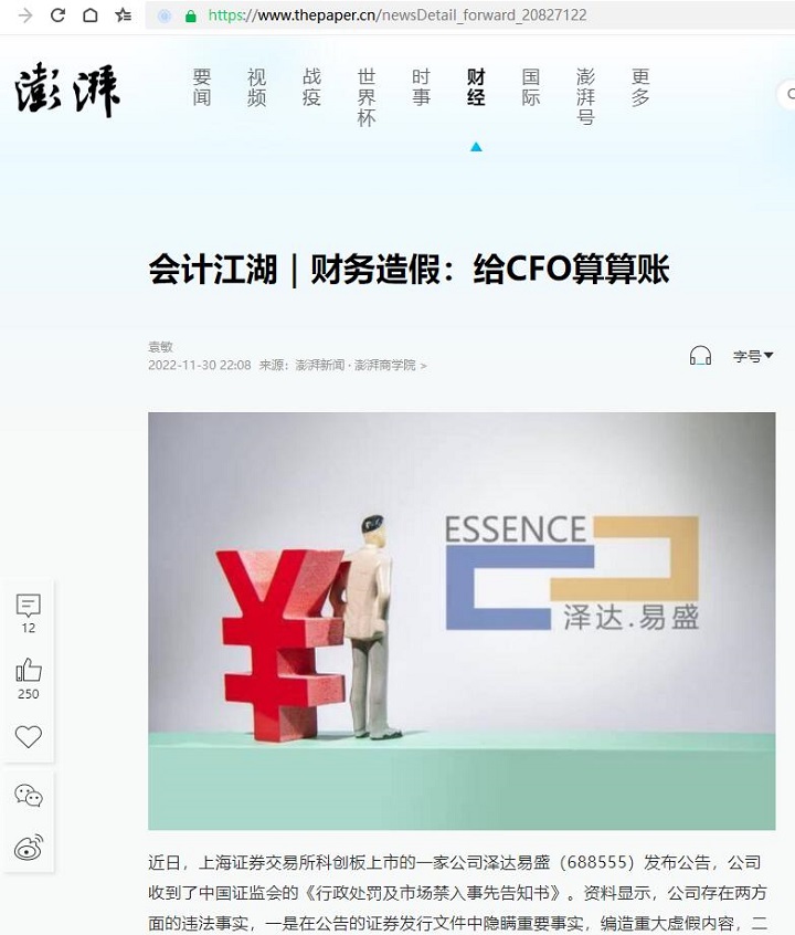 袁敏:会计江湖|财务造假:给CFO算算账【2022年11月30日,澎湃新闻】