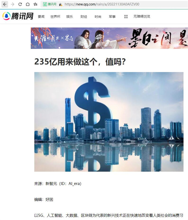 方国兵:235亿用来做这个,值吗?【2022年11月30日,腾讯网】