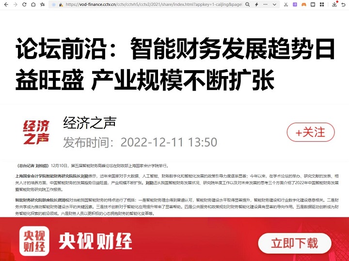 论坛前沿:智能财务发展趋势日益旺盛 产业规模不断扩张【2022年12月11日,央广总台经济之声】