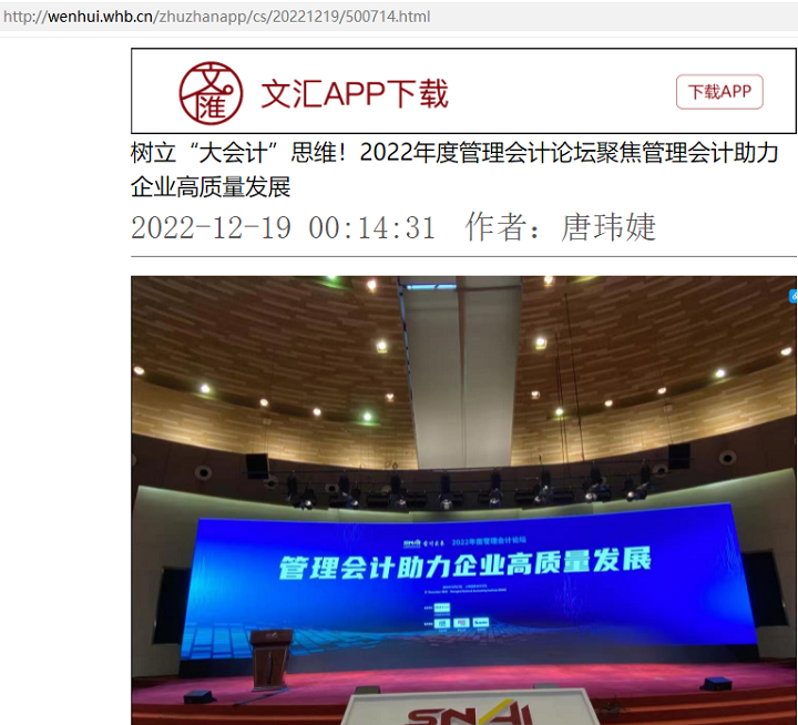 树立“大会计”思维!2022年度管理会计论坛聚焦管理会计助力企业高质量发展【2022年12月19日,文汇报】