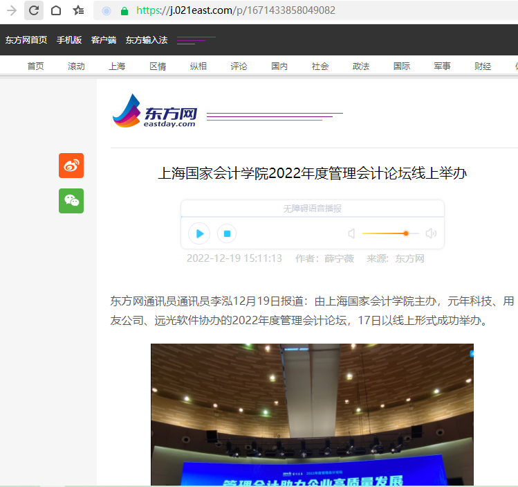 上海国家会计学院2022年度管理会计论坛线上举办【2022年12月19日,东方网】