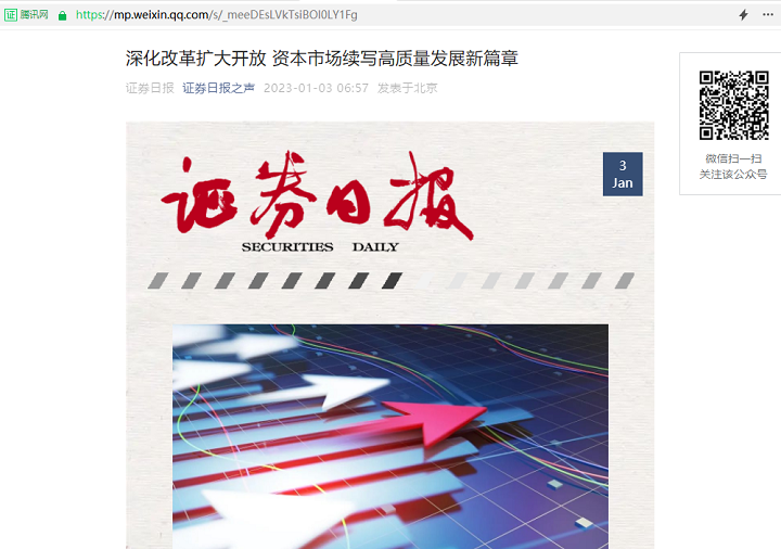 叶小杰:深化改革扩大开放 资本市场续写高质量发展新篇章【2023年1月3日,证券日报】