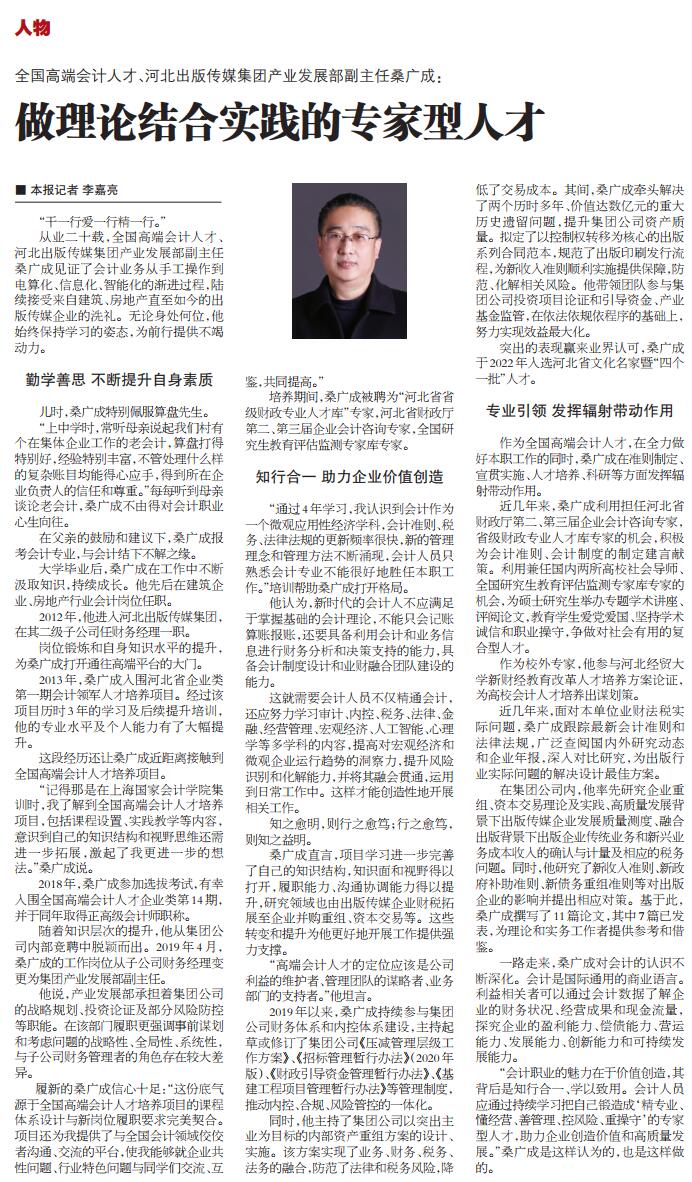 《中国会计报》:全国高端会计人才、河北出版传媒集团产业发展部副主任桑广成:做理论结合实践的专家型人才【2023年1月20日】