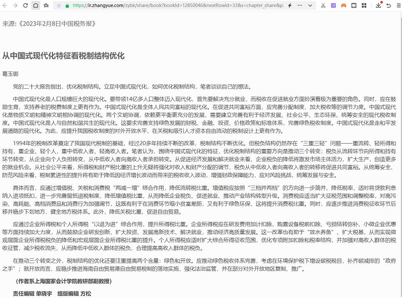 葛玉御:从中国式现代化特征看税制结构优化【2023年2月8日,中国税务报】