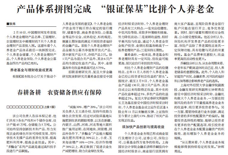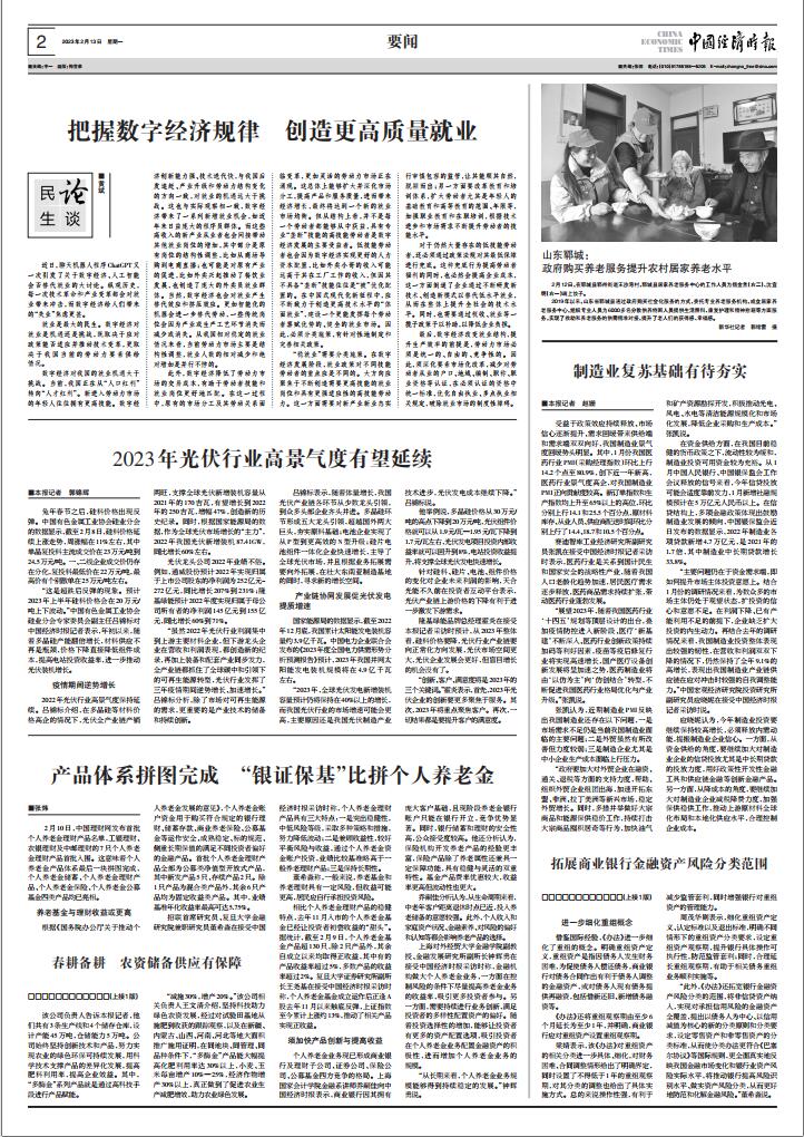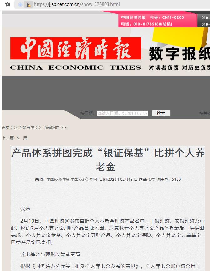 乔嗣佳:产品体系拼图完成“银证保基”比拼个人养老金【2023年2月13日,中国经济时报】