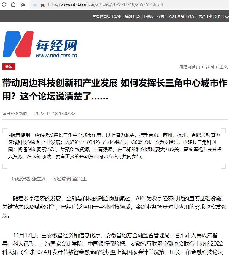 带动周边科技创新和产业发展 如何发挥长三角中心城市作用?这个论坛说清楚了……【2022年11月18日,每日经济新闻】