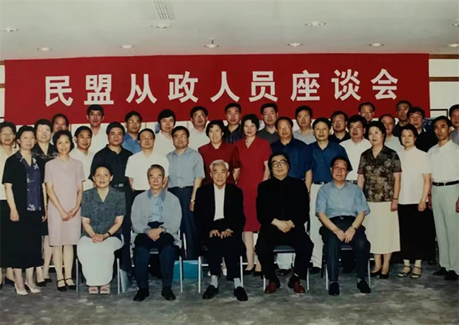 前排左3为民盟中央主席丁石孙,左1为张梅颖,后排右4为吴大器