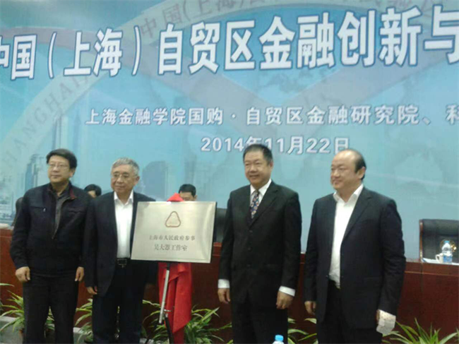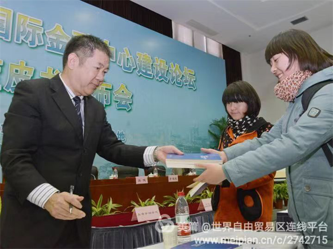 吴大器在2014年上海国际金融中心建设论坛上向与会者赠送蓝皮书
