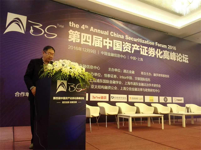吴大器在2016年第四届中国资产证券化高峰论坛上做主旨报告