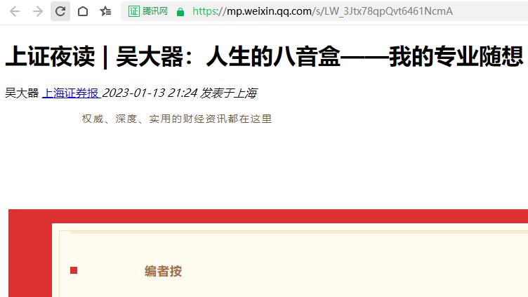 上证夜读 | 吴大器:人生的八音盒——我的专业随想【2023年1月3日,上海证券报】