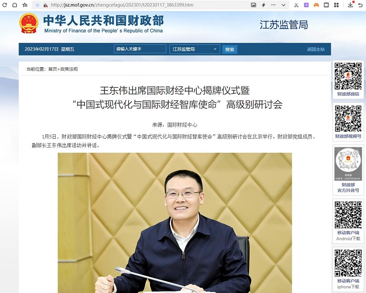 王东伟出席国际财经中心揭牌仪式暨“中国式现代化与国际财经智库使命”高级别研讨会【2023年1月17日,财政部】