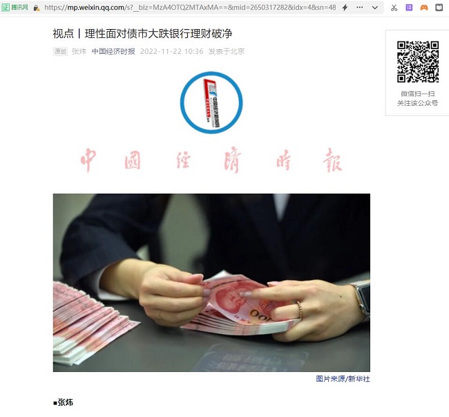 乔嗣佳:理性面对债市大跌银行理财破净【2022年11月22日,中国经济时报】