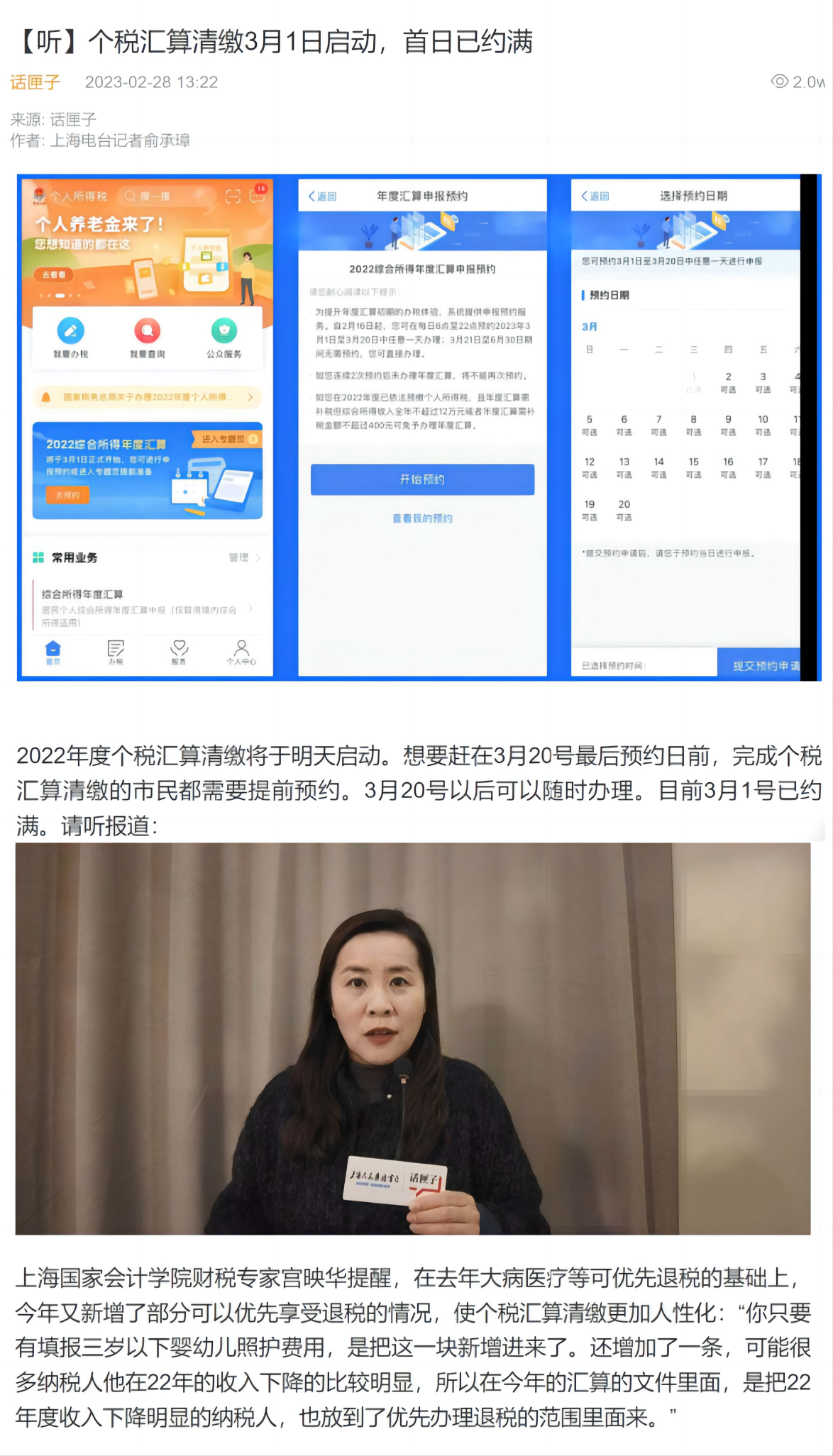 专家观点:宫映华 | 话匣子:个税汇算清缴3月1日启动,首日已约满【2023年2月28日】