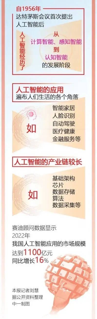 赛迪顾问数据显示,2022年中国人工智能应用的市场规模达到1100亿元,同比增长16%。人工智能关键技术与融合应用渐次突破,应用场景涵盖智能制造、智能交通、智慧金融、智能医疗、智能教育等。随着人工智能赋能百业的效果日益显著,更多行业和领域正加速拥抱人工智能。