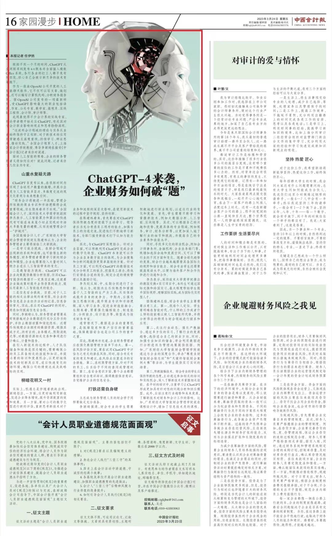 行业观点:李颖琦|中国会计报:ChatGPT-4来袭,企业财务如何破“题”? 【2023年3月24日】