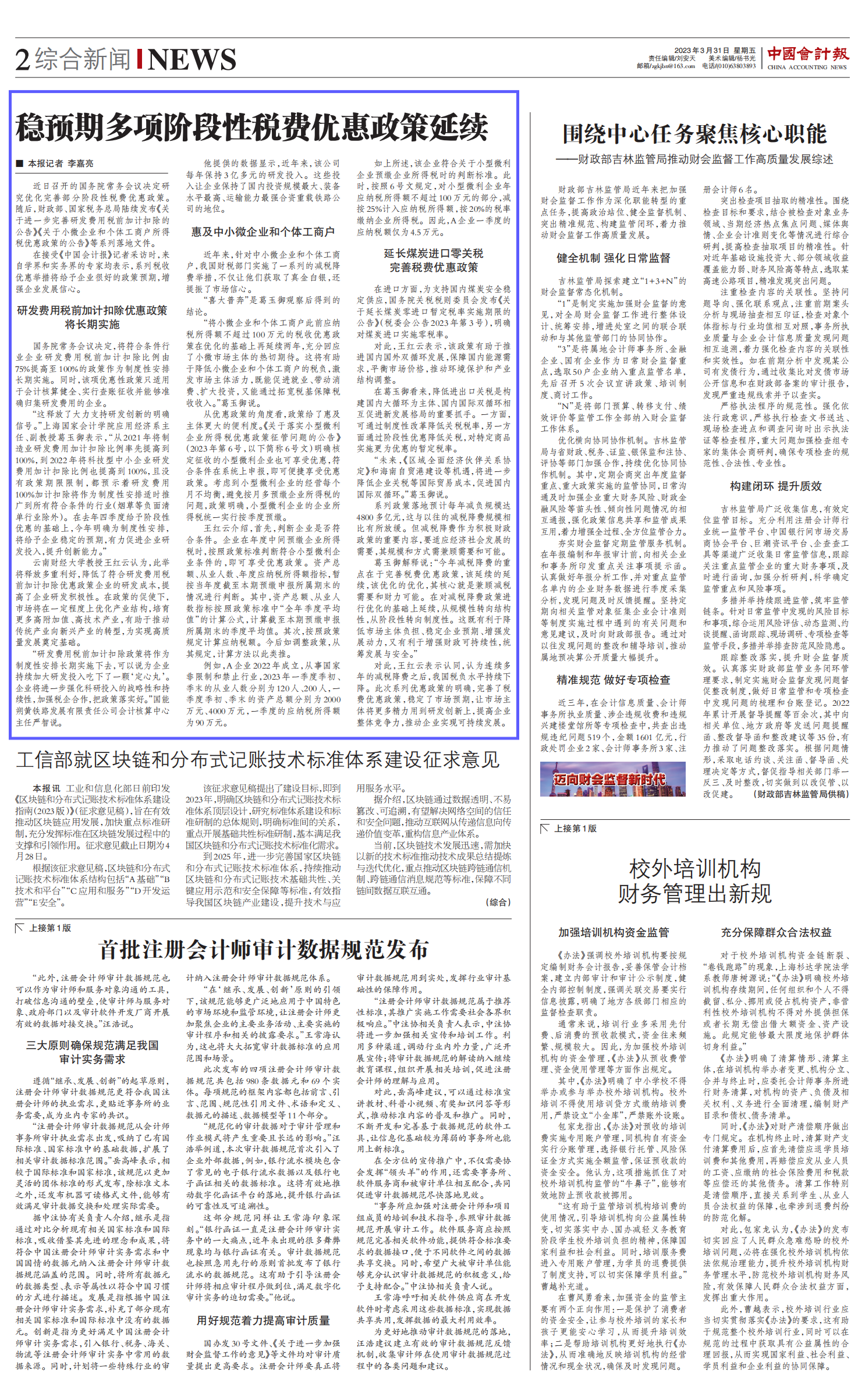 专家观点:葛玉御 | 中国会计报:稳预期多项阶段性税费优惠政策延续 【2023年3月31日】