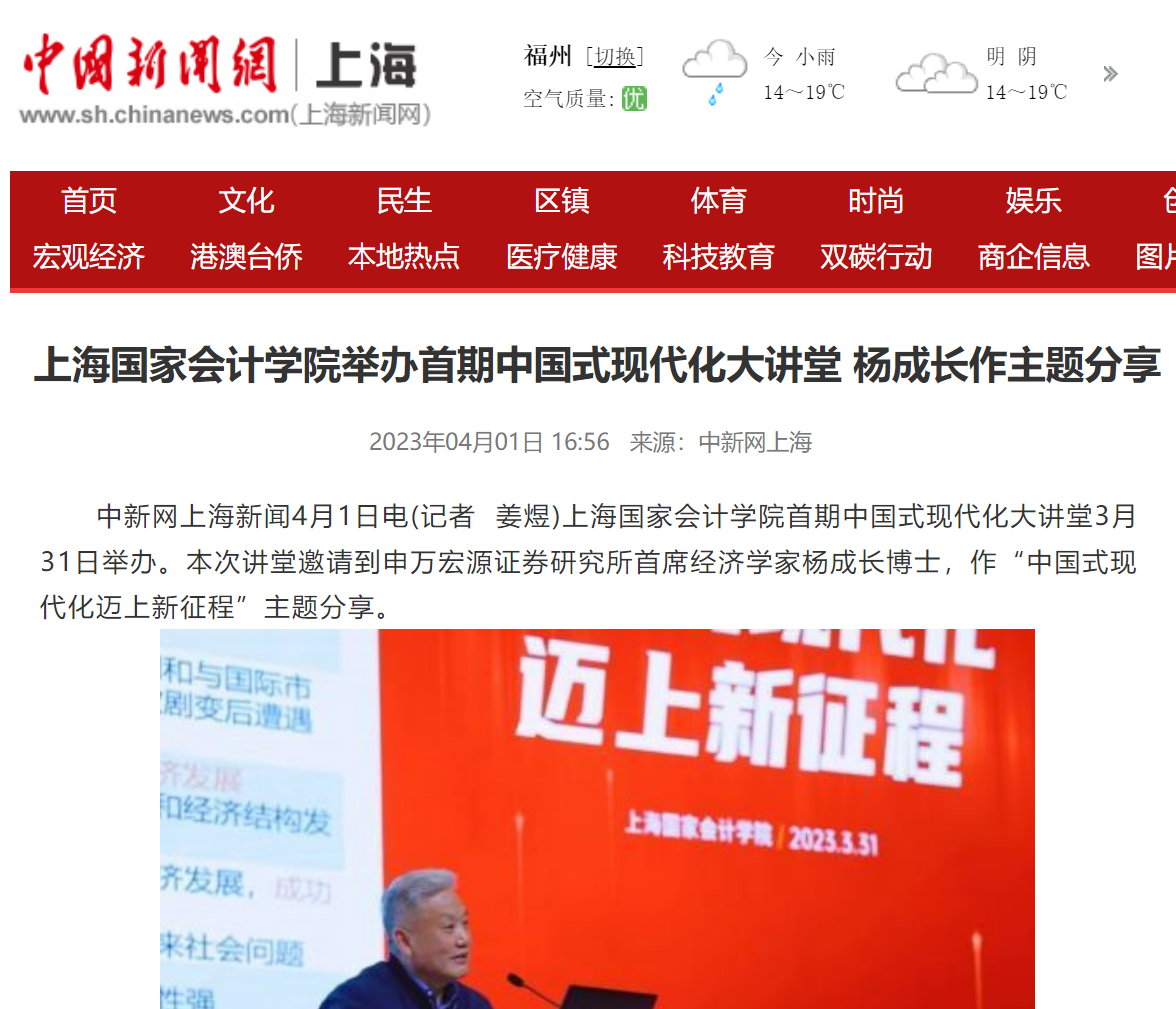 中国新闻网:上海国家会计学院举办首期中国式现代化大讲堂 杨成长作主题分享【2023年4月1日】