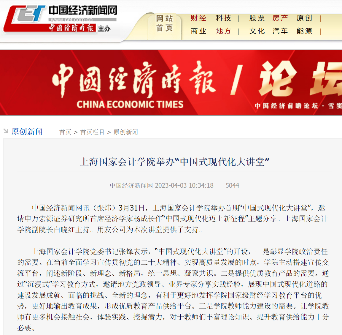 中国经济新闻网:上海国家会计学院举办“中国式现代化大讲堂”【2023年4月3日】