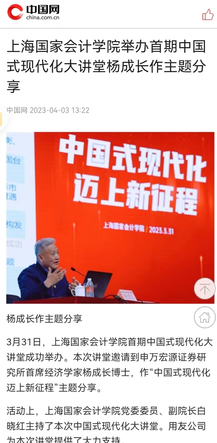 中国网:上海国家会计学院举办首期中国式现代化大讲堂 杨成长作主题分享【2023年4月3日】
