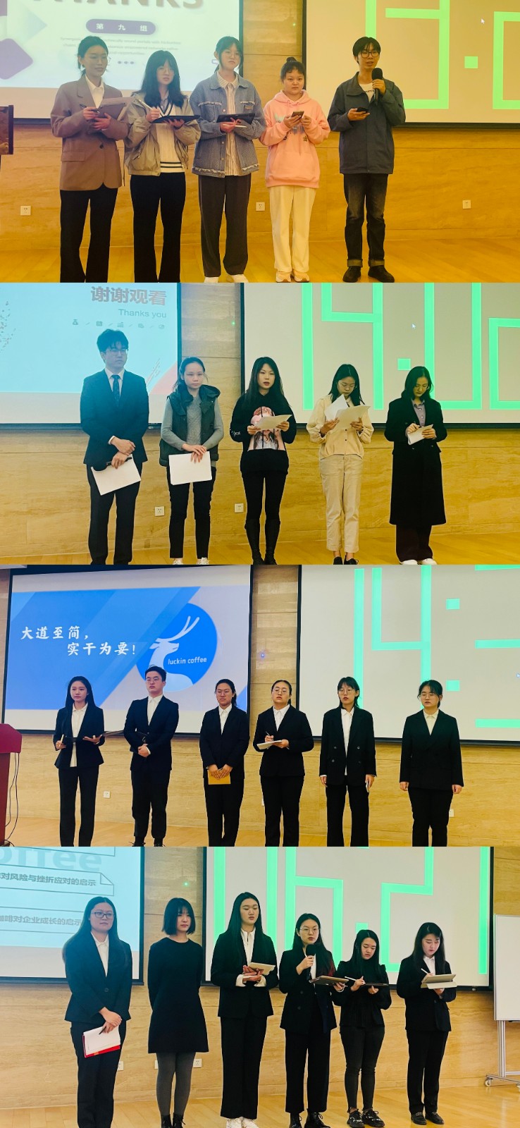 本届校园选拔赛围绕案例“瑞幸咖啡:丑闻与转身”开展分析与研究,参赛的14支队伍在专业教师的指导下,分工合作,赛前完成了问题分析、文献研读、模型建立、报告撰写等各个环节的任务。比赛现场各组分别进行了案例汇报展示与现场答辩,经过激烈角逐,专家评议,最终有七支队伍获得全国赛事参赛资格。郭永清教授在现场点评中对研究生在案例思考、报告形式等方面给予了更深入的指导建议。
