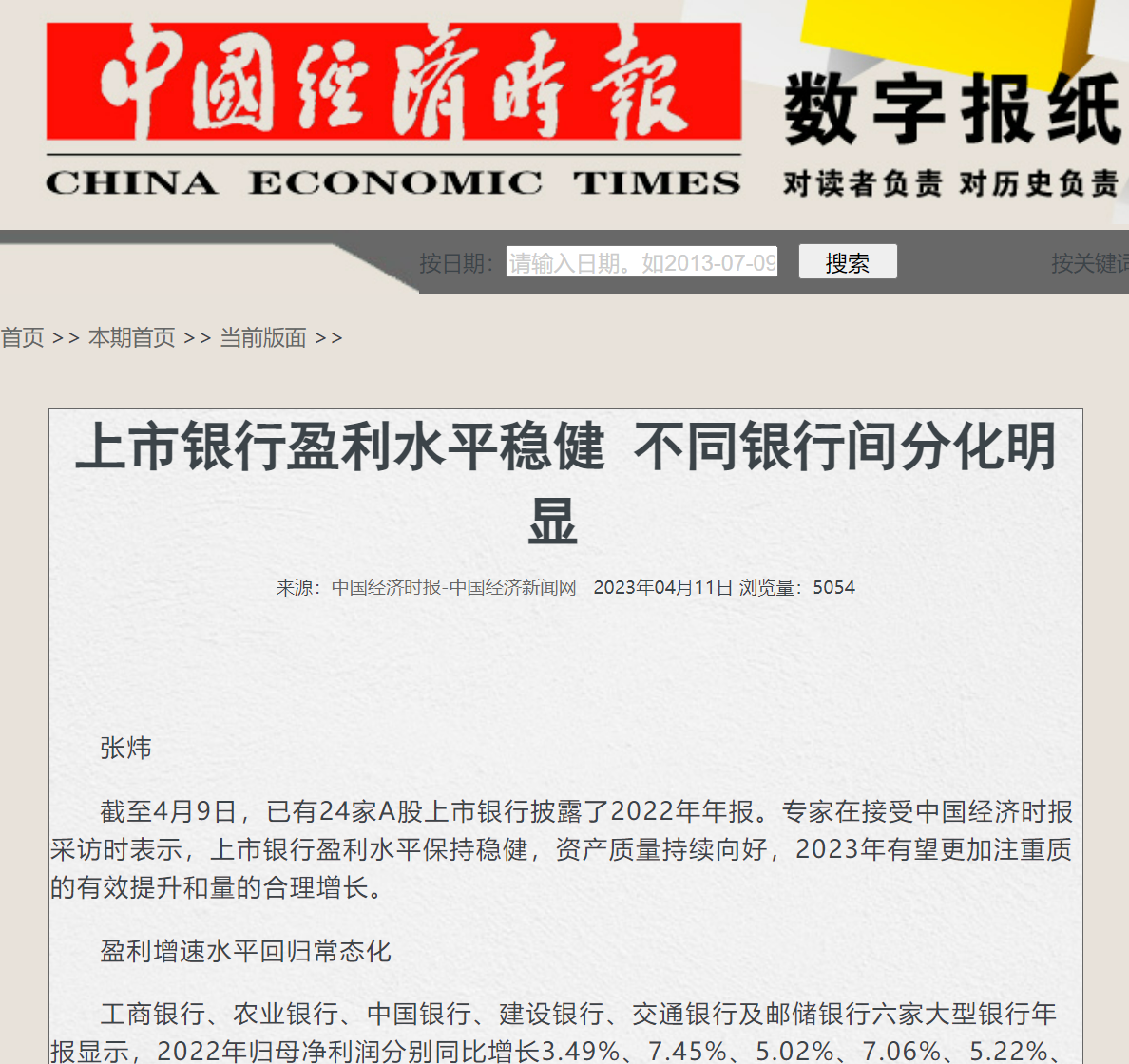专家观点:叶小杰 | 中国经济时报:上市银行盈利水平稳健 不同银行间分化明显【2023年4月11日】