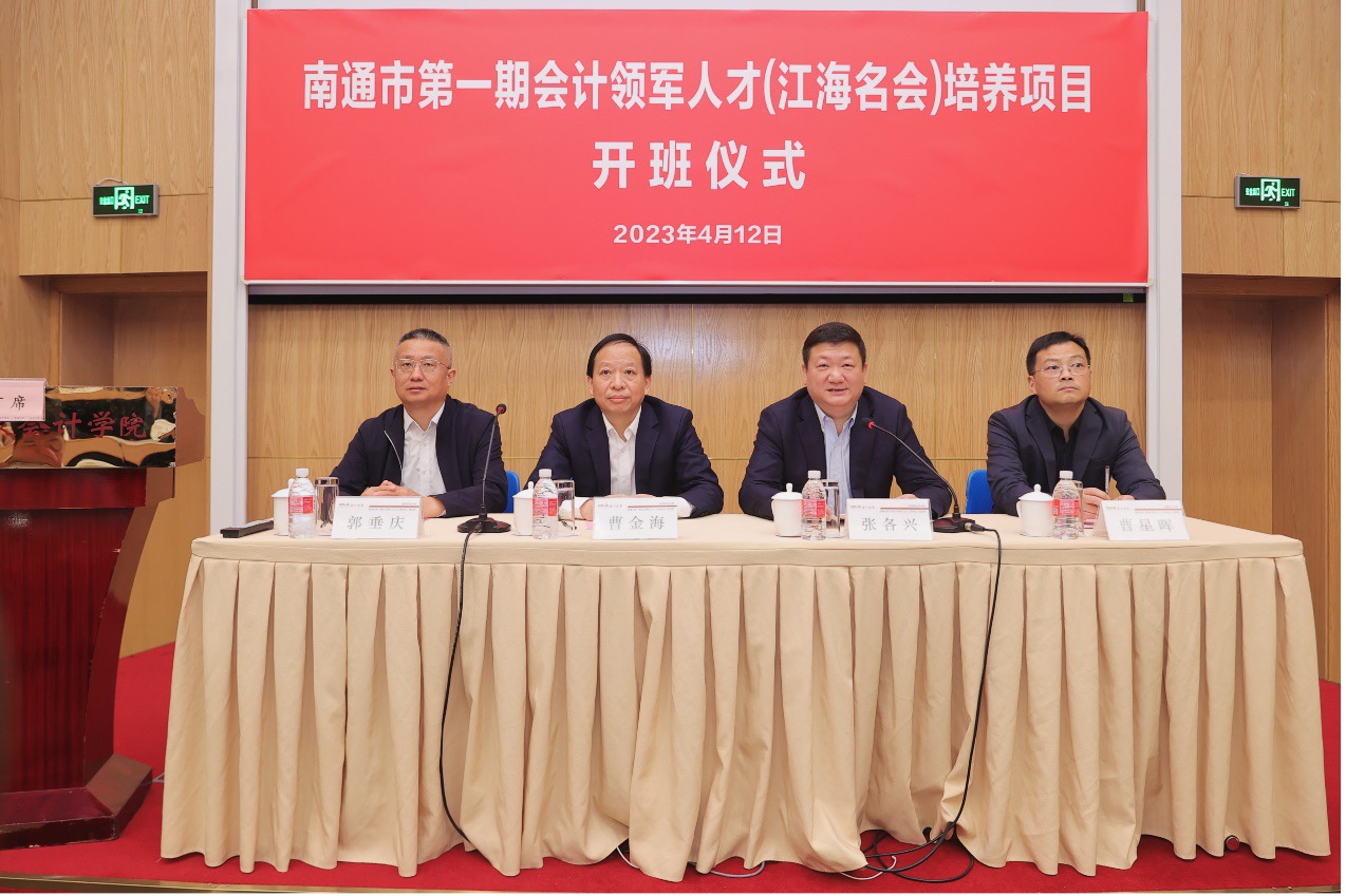 为积极落实南通市“人才新政3.0版”相关要求,加快南通市高端会计人才培养步伐,南通市财政局联合市委人才办、市人社局推出南通市第一期会计领军人才(江海名会)培养项目,通过领军“头雁”激发“群雁活力”,助力南通市会计人才队伍全面提升。4月12日,南通市第一期会计领军人才(江海名会)培养项目在上海国家会计学院顺利开班。南通市财政局党组书记、局长曹金海、上海国家会计学院党委委员、副院长张各兴、南通市财政局副局长郭垂庆和南通市人社局党组成员、副局长曹星晖出席了开班仪式。
