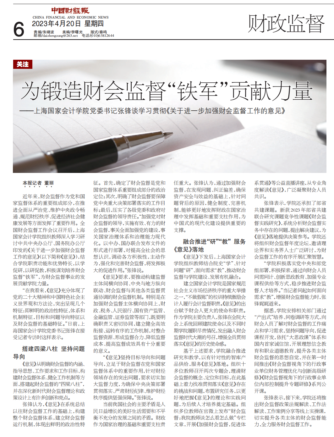 《中国财经报》:上海国家会计学院党委书记张锋谈学习贯彻《关于进一步加强财会监督工作的意见》