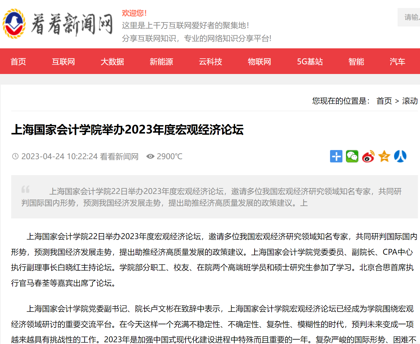 看看新闻网:上海国家会计学院举办2023年度宏观经济论坛【2023年4月24日】