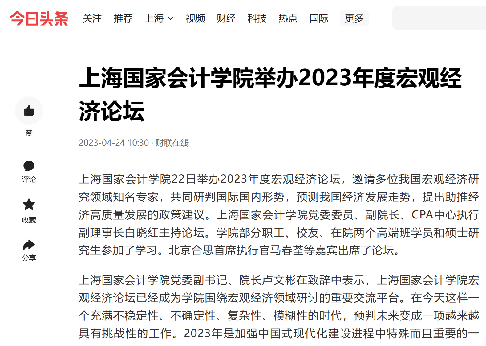 财联社:上海国家会计学院举办2023年度宏观经济论坛【2023年4月24日】