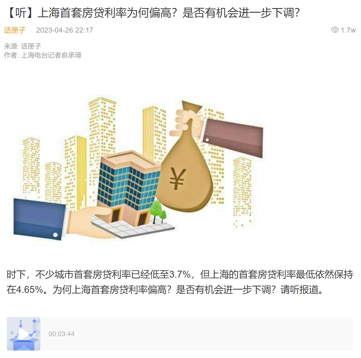 行业观点:钟世虎|话匣子:上海首套房贷利率为何偏高?是否有机会进一步下调?【2023年4月26日】