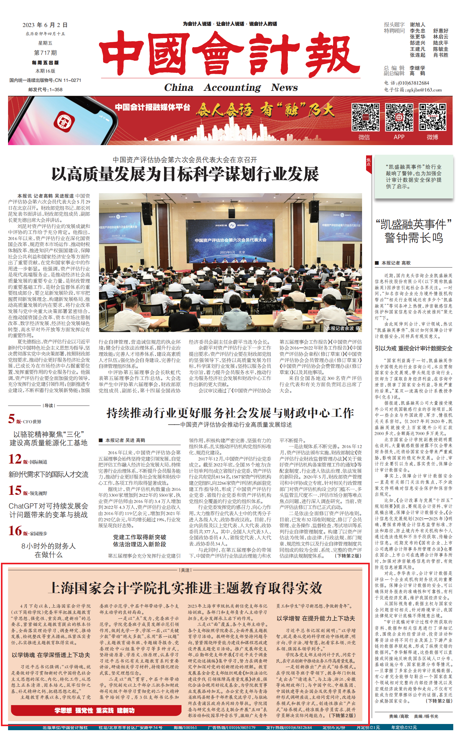 《中国会计报》:上海国家会计学院扎实推进主题教育取得实效 【2023年6月2日】