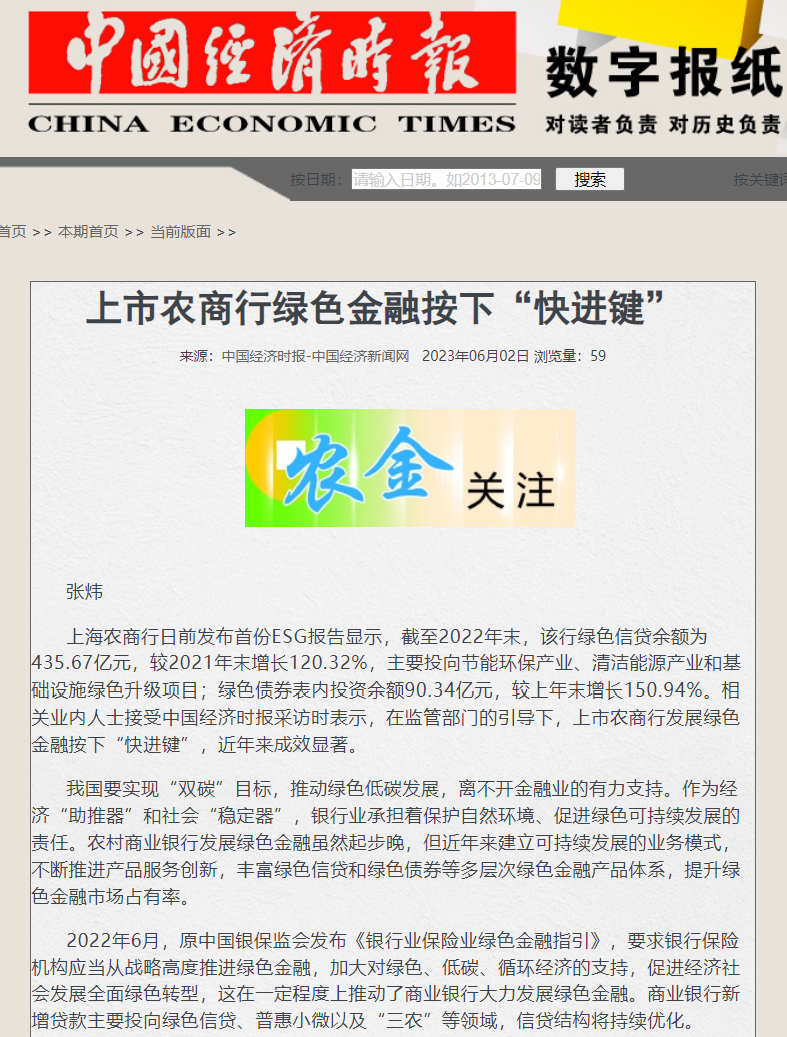 行业观点:李琳|中国经济时报:上市农商行绿色金融按下“快进键”【2023年6月2日】